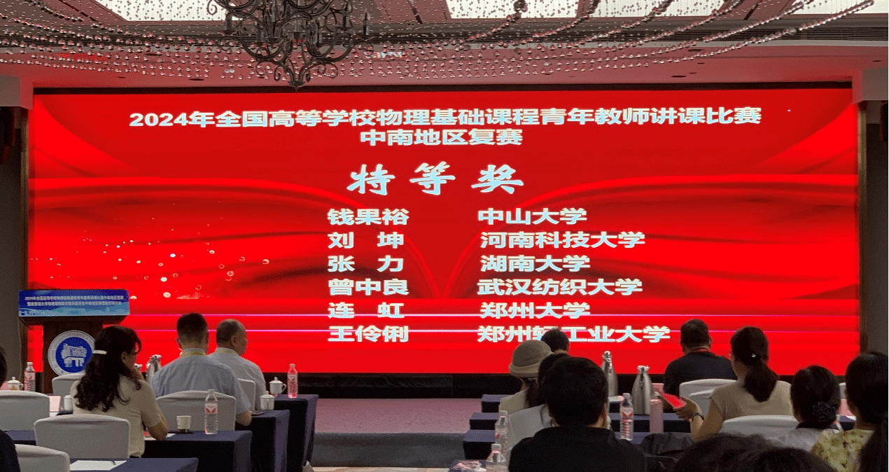 本次讲课比赛经过前期选拔,汇聚了河南、海南、湖北、湖南、广西、广东六省18名优秀物理教师参加。经过激烈角逐,王伶俐老师凭借扎实的理论功底和丰富的教学经验,以创新的教学设计、条理清晰的讲授和沉稳从容的问答,在决赛中夺得中南赛区特等奖。