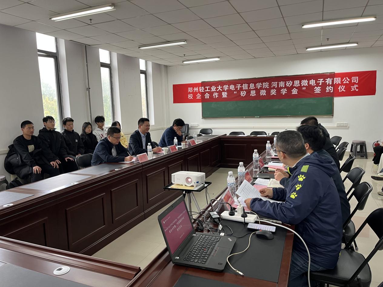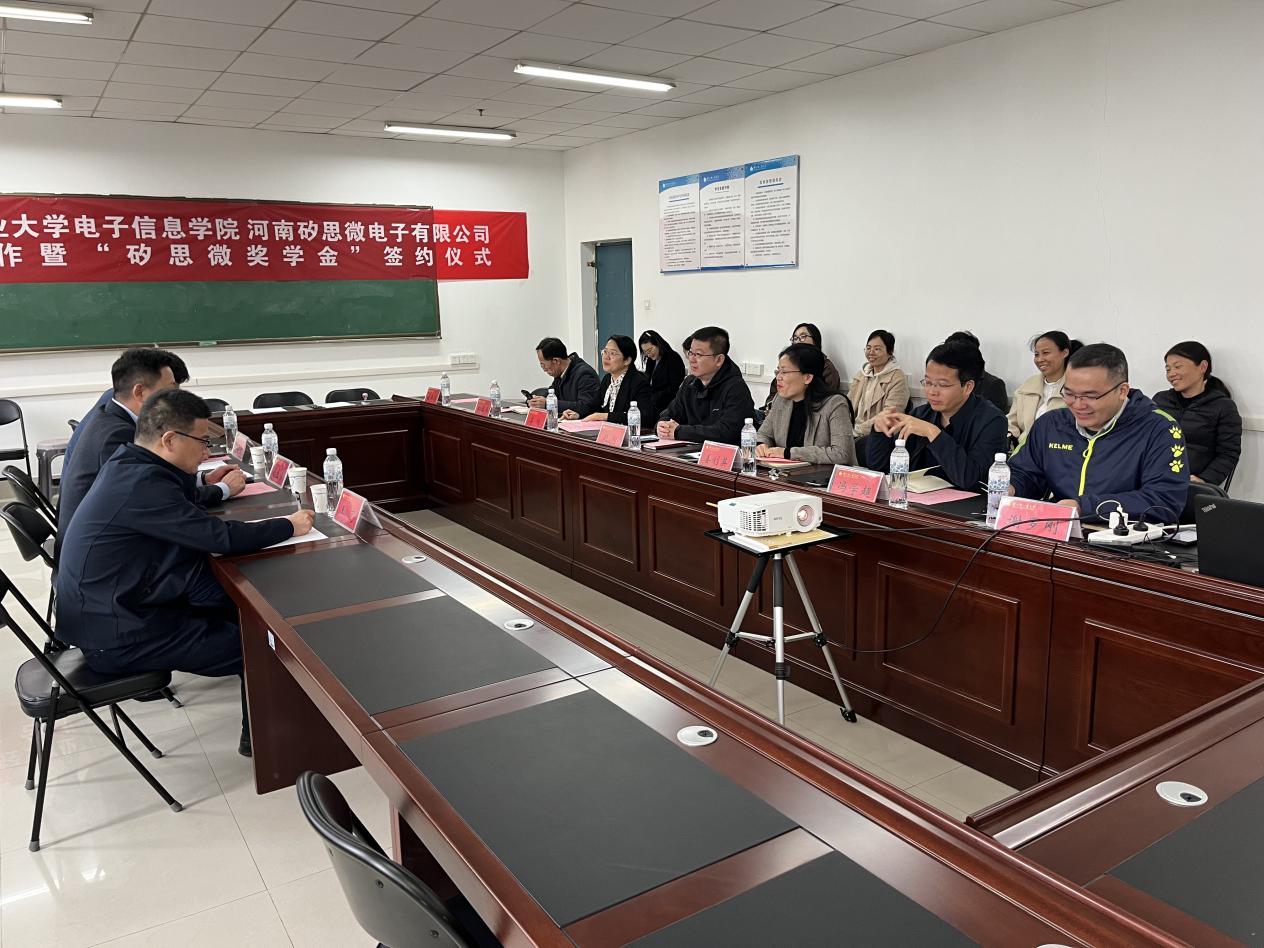为进一步推动产教融合、深化校企合作,11月7日下午,肉漫屋 与河南矽思微电子有限公司、郑州中科集成电路与系统应用研究院在四教楼305会议室举行校企合作暨“矽思微奖学金”签约仪式。河南矽思微电子有限公司总经理冯立伟,郑州中科集成电路与系统应用研究院院长助理赵俊超,河南矽思微电子有限公司副总经理王克,肉漫屋 班子成员、教师及学生代表参加签约仪式。会议由微电子科学与工程系主任谢罗刚主持。