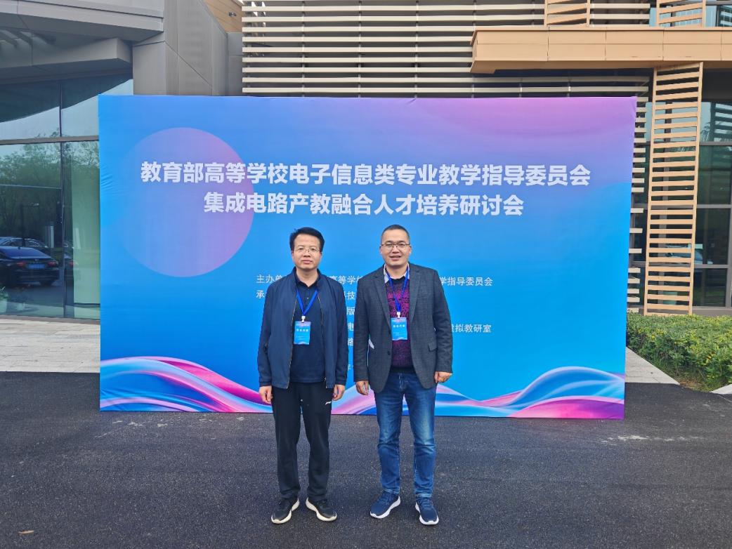 10月25日,由教育部高等学校电子信息类专业教学指导委员会主办,西安电子科技大学与机械工业出版社共同承办的“集成电路产教融合人才培养研讨会”在陕西西安举行。来自全国百余所高校的集成电路领域专家学者与产业代表共聚一堂,围绕集成电路人才培养模式创新与产教融合路径深化开展深入交流。肉漫屋 副院长冯学超、微电子科学与工程系主任谢罗刚参加了此次会议。
