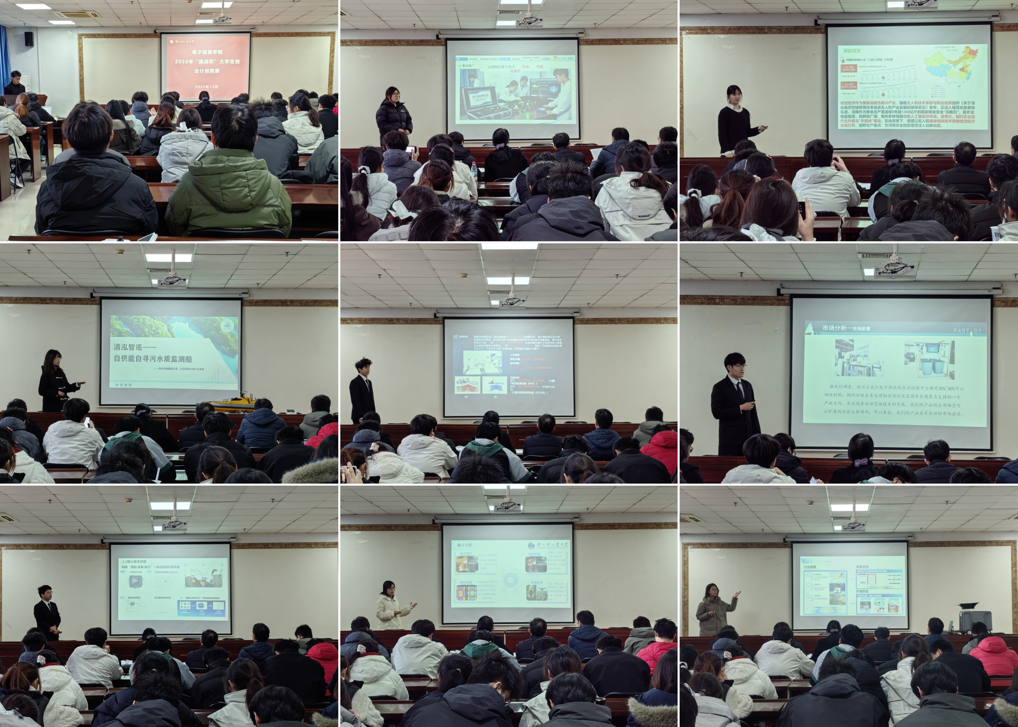 前期,经过广泛宣传动员、挖掘征集学生优秀创业项目报名参赛,经自主申报、项目初审,共有24项作品入围答辩展示,涵盖科技创新、乡村振兴、公共服务、生态环保等方面。比赛开始,主持人详细介绍了比赛流程及项目答辩要求。参赛选手通过PPT演示,从项目的社会价值、实践过程、创新意义、发展前景和团队协作等方面进行了精彩展示。在答辩环节,评委们根据项目申报书结合汇报情况进行了专业点评,从项目技术优势、创新点、商业模式以及计划书撰写等方面指出了项目存在的问题并提出修改建议。
